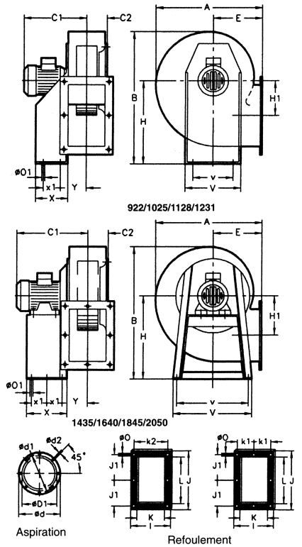 Dimensions avec différentes orientations :